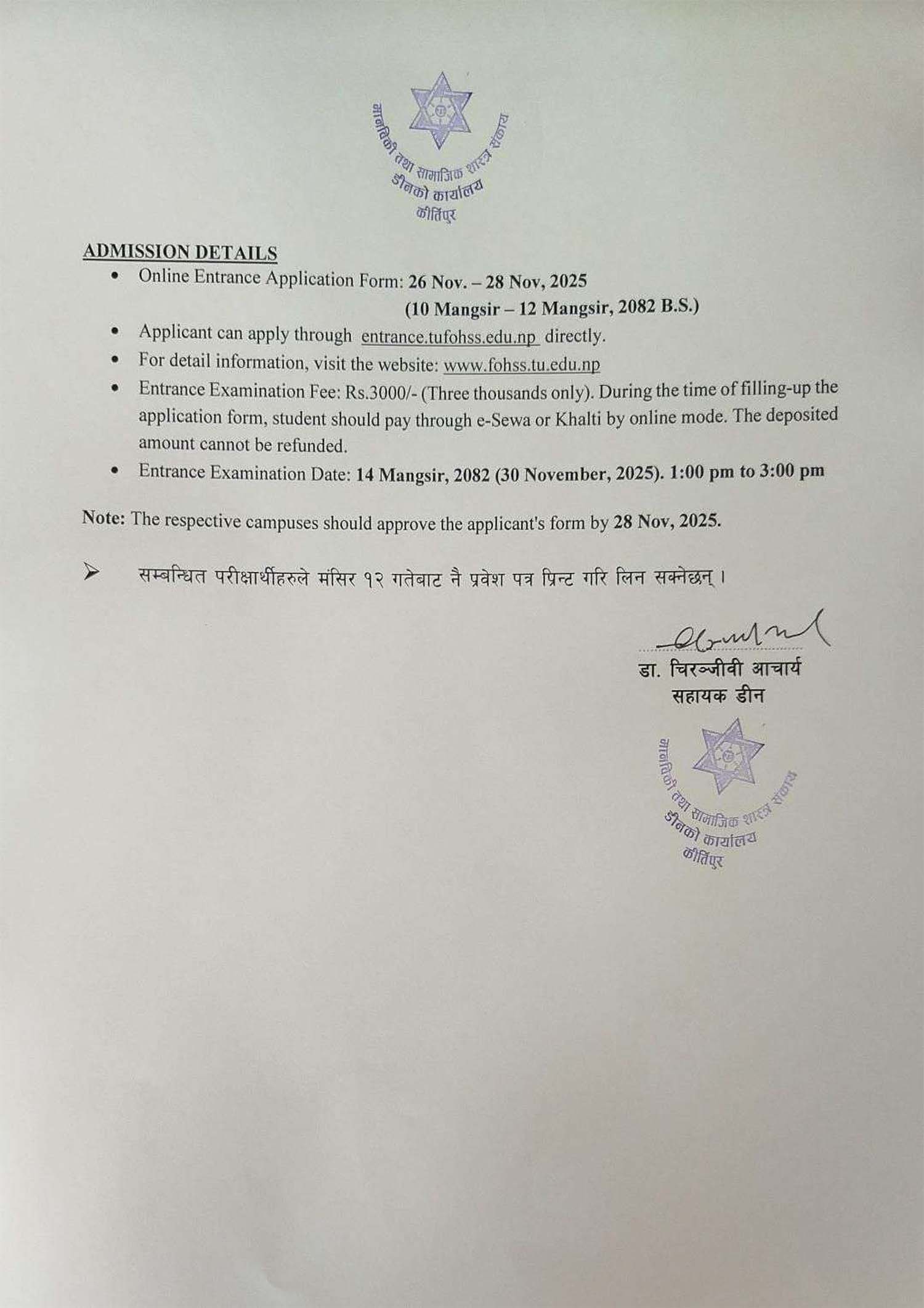 BCA Entrance Exam Date 2082 | Mangisr 14, 2082 (30 November, 2025 |