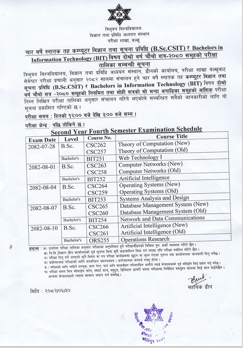 BIT 4th Semester Exam Routine 2082 – TU IoST