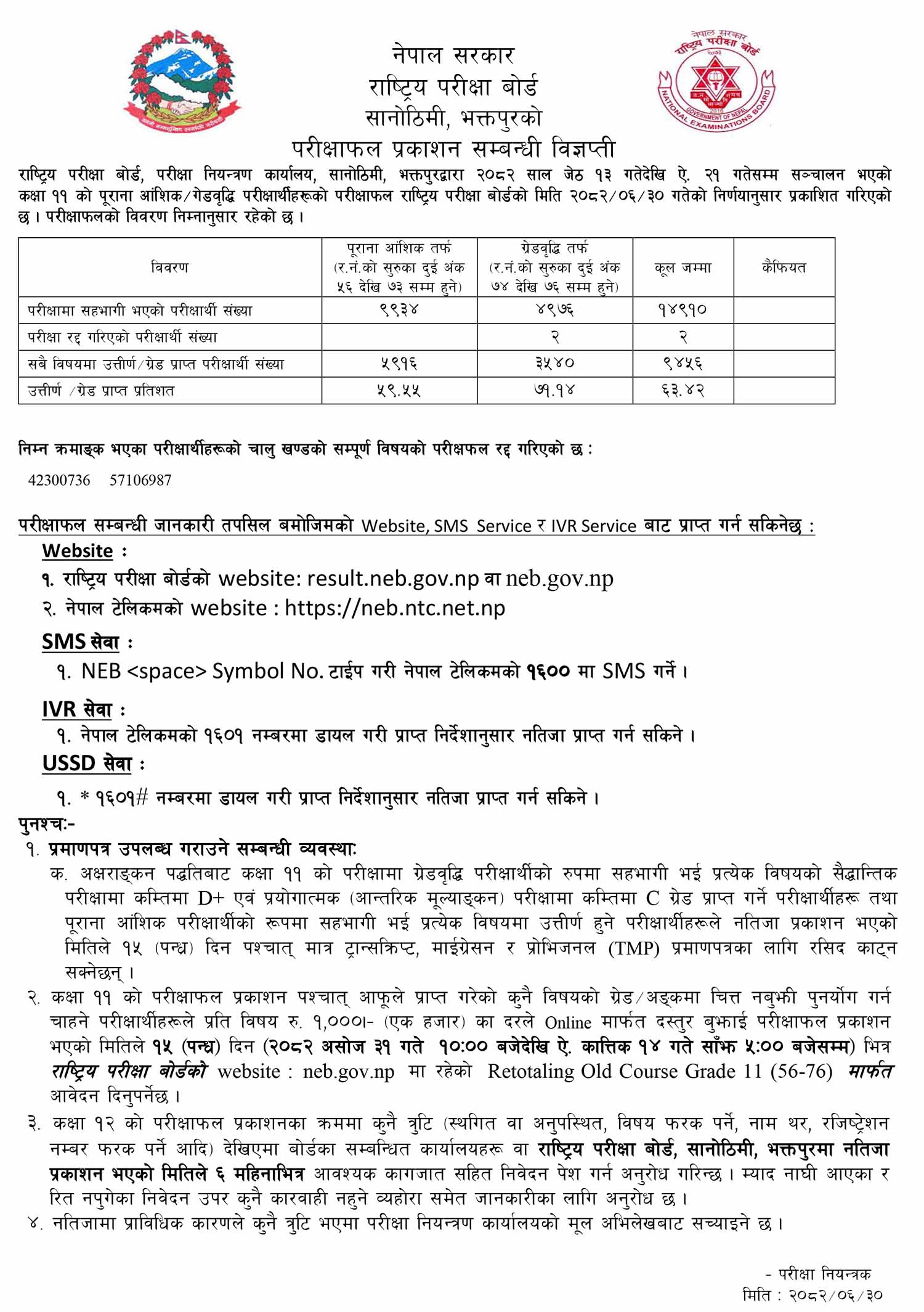 Class 11 Grade Increment Exam Result 2082 Published - NEB
