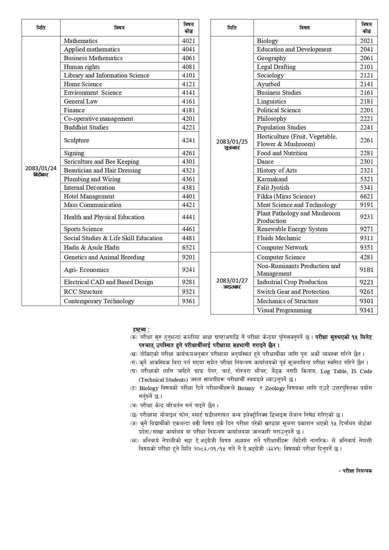 Exam Date | Baisakh 14 – Baisakh 27 |